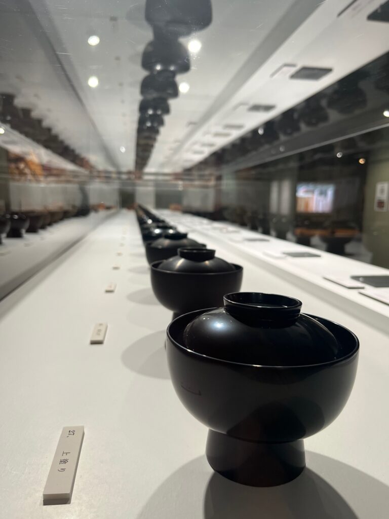 特に、木材から輪島塗の無地のお椀が出来るまで各工程につきひとつお椀が並んでいた光景は圧巻でした。その数27個。